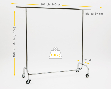 Diese Kleiderständerserie ist perfekt für Kaufhäuser, Catering sowie Transportunternehmen konzipiert. Durch dickwandige Stahlrohre erhält dieses Modell höchste Qualität bzw. Haltbarkeit, Standfestigkeit und Belastbarkeit von 160 kg. Somit bestens geeignet für schwere Hängeware wie z.B. Jacken und Mäntel.