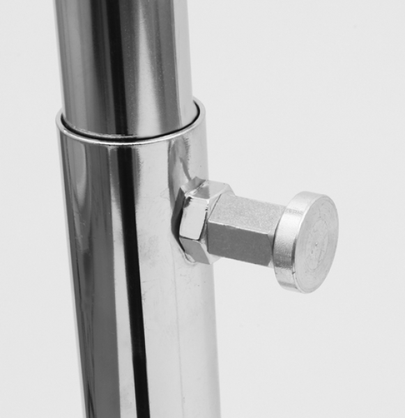 Dauerhaft glanzverchromt, die Verbindungen sind geschweißt, absolut bruchfest. Die Montage ist einfach durch Clickverschluss, in 20 Sekunden aufgebaut.