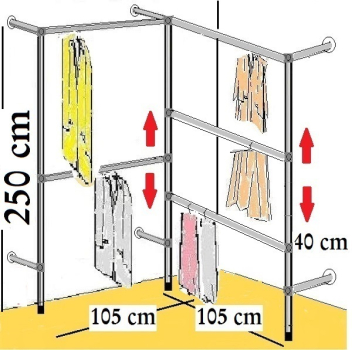 Wandregal für Flur, Kleiderstange, Garderobe, Ankleidezimmer, Kleiderstangensystem, Wäscheständer, Ladeneinrichtung, begehbarer Kleiderschrank, Bekleidungsständer, Garderobe, Kleiderständer, Wandregal, Kleiderkammer, Textilständer, Ankleiderzimmersystem, Kleiderstangenlösung