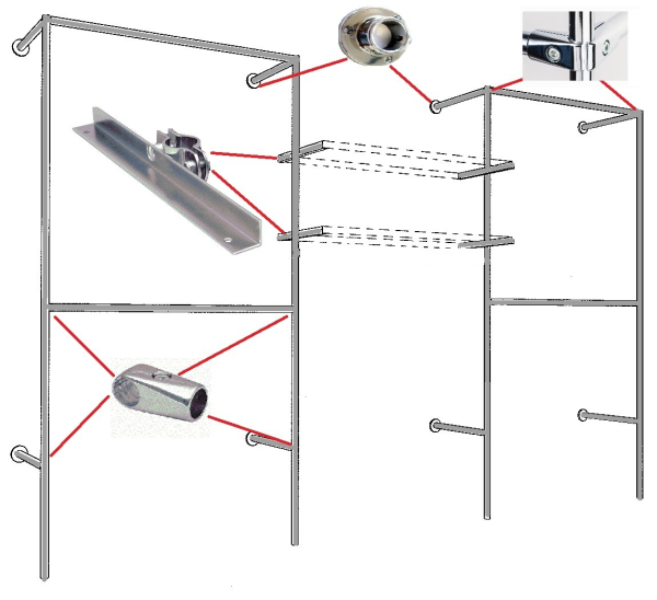 - bei anderen Abmessungen Ihrer Räume Chromrohre mit einer Eisensäge auf die gewünschte Länge kürzen und an der Wand befestigen